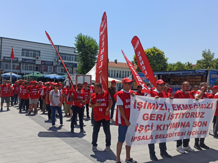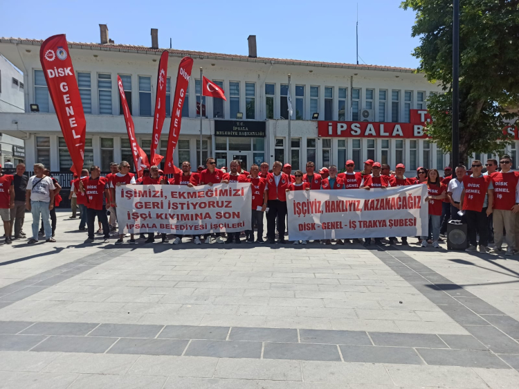 Devrimci İşçi Sendikaları Konfederasyonu (DİSK) Genel-İş Sendikası Trakya Şubesi, toplam 119 işçinin işten çıkarılmasına tepki göstermek amacıyla İpsala Belediye önünde basın açıklaması yaptı