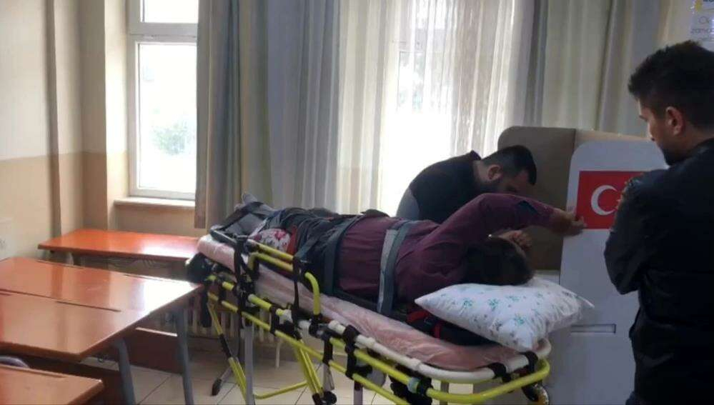 Çerkezköy ilçesinde yaşayan 65 yaşındaki Yüksel Eceli, Çerkezköy Devlet Hastanesi'nde diyaliz hastası olarak tedavi görürken, ambulans eşliğinde sedye ile gelerek, Fevzipaşa İlkokulu 1092 nolu sandıkta oyunu kullandı.