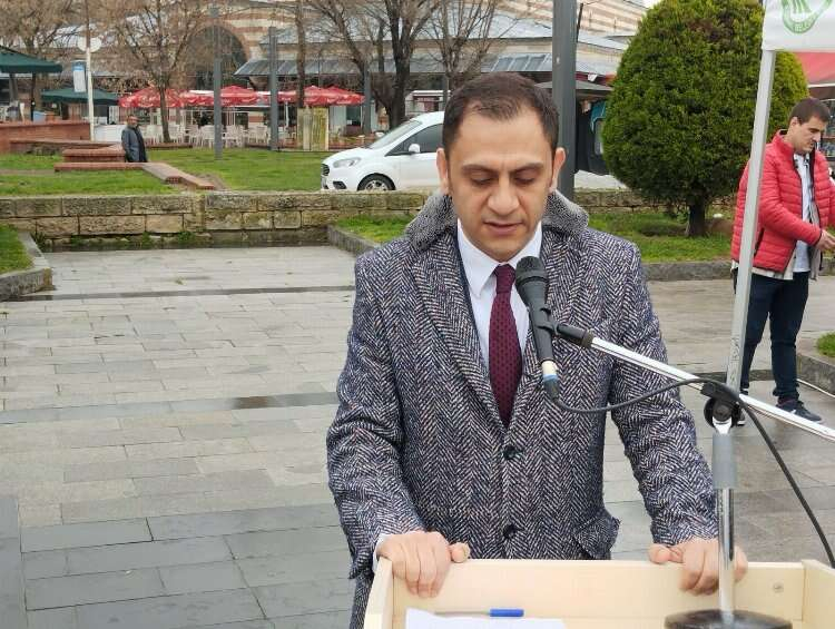 Edirne Tabip Odası Başkanı Prof. Dr. Gürcan Altun, “Bizi görmezden, duymazdan gelenlere, yok sayanlara, bizi değersizleştirmeye çalışanlara hiçbir yere çekip girmiyoruz, buradaydık, buradayız, burada kalacağız diyoruz. Bugünün ismi her ne kadar Tıp Bayramı olsa da hekimlerin bir gün dahi bayram yaşadığını söylemek olası değil. 14 Mart hekimlerin sorunlarını ve taleplerini dile getirdiği bir mücadele günüdür. Her şeye rağmen iyi hekimlik değerlerine sahip çıkarak daha adil, daha eşit ve sömürüsüz sağlık emek sistemini hep birlikte yaratacağımıza, geleceğin coşkuyla kutlanacak Tıp Bayramı’na ulaşacağımıza inancımız tamdır” dedi.
