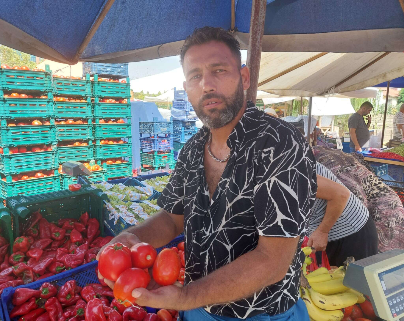 Çanakkale’de çıkan yangınlardan sonra piyasanın bozulduğunu, ileriki günlerde domatesin fiyatının arta bileceğine değinen Çam “Şu anda fiyatlarımız normal ama önümüzdeki günlerde ne olacak bilemeyiz. Bazen Çanakkale’de mal eksik diyorlar. Bir bakıyoruz fiyatları doğrudan etkilemiş. Biliyorsunuz geçtiğimiz haftalarda Çanakkale’de bir yangın oldu. O yangın bizi çok etkiledi. Bütün sebze meyve tarlaları yandı. Herkes köylerden kaçtı. Belki önümüzdeki haftalarda Çanakkale domatesi 20 liraya çıkabilir. Çanakkale’de olan bütün olaylar bizim fiyatımızı etkiliyor. Orada bulunan herkese Allah yardım etsin, çok zor bir durum. Bütün emekleri, bütün geçim kaynağı yandı insanların. Yangın olmadan önce domatesi 10 TL civarında satabiliyorduk. Şu anda 12 TL fiyatı var domatesin ama haftaya ne olacak bir şey diyemiyorum. Umarım fiyatı daha fazla yükselmez. Vatandaşımız doya doya alsın yesin” ifadelerine yer verdi.