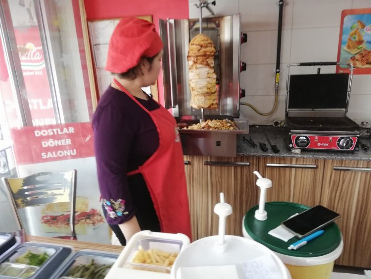 Gerçekten burası bizim ekmek teknemiz. Ailemizin tüm ihtiyaçları buradan karşılanıyor. Bu işin hakkını en güzel şekilde veriyoruz. 9 yıl içerisinde doğuma 1 hafta kala işimden ayrıldım. Kızımı dünyaya getirdiğimde beslemekte sıkıntı yaşamaya başlamıştım. Eşim iş yerinden eve döndüğünde kızım mama yemeye başlıyordu. Anladık ki kızım dönerin kokusunu istiyordu. Bu yüzden gündüzleri eşimin giydiği gömleği giyerek kızımı beslemeye başladım. 40’ıncı gününden sora kızımı da yanıma alarak işimin başına geçtim. Kızım Doğa Nur şu anda 8 yaşında okuldan sonra yine yanıma geliyor, biryandan derslerini yaparken, diğer yandan da müşterileri karşılıyor.”