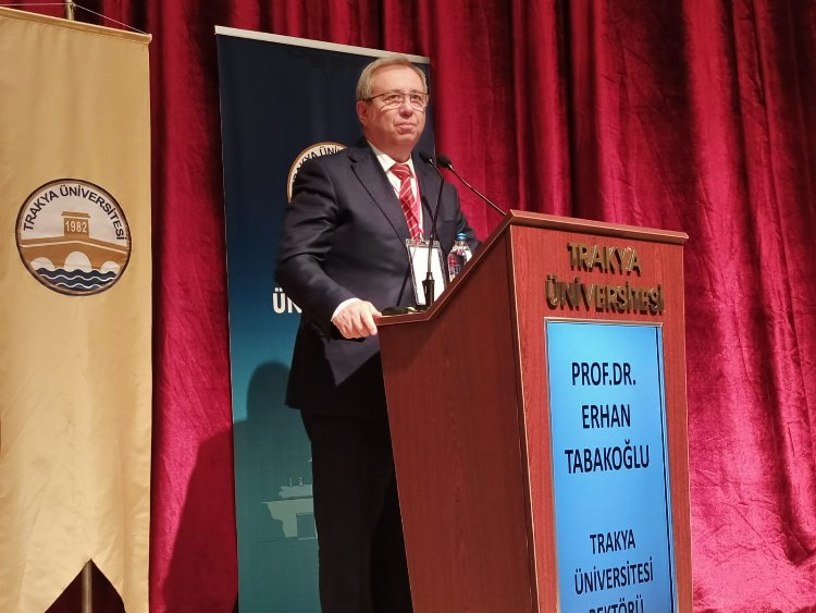 Zülfikar'ın ardından programda Prof. Dr. Tabakoğlu konuştu. Tabakoğlu, Trakya Üniversitesi'nin, Edirne'nin değerlerini ortaya çıkarmak için pek çok toplantı düzenlediğini söyledi. Edirne Araştırmaları Sempozyumu'na "Starlar" diye hitap ettiği hocaların hocası olan akademisyenlerin katıldığını belirten Tabakoğlu, Edirne'yi yeni nesile anlatacaklarını ve sempozyumu kitaplaştıracaklarını açıkladı.