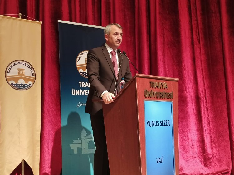 Tabakoğlu'nun ardından programda Vali Sezer konuştu. Sezer, görevine başladığı günden beri Edirne ile ilgili sürekli yeni bilgiler öğrendiğini açıklarken; Edirne'nin muhteşem bir şehir olduğunu söyledi. Edirne Sarayı'nda Milli Saraylar tarafından gerçekleştirilen çalışmaların devam ettiğini belirten Sezer, Cihannüma Kasrı'nın 2024 yılı sonuna kadar bitirilmesinin planlandığını açıkladı. Sezer, Namazgah bölümünün çeşmesi ile tamamlandığını, surların yapımının da devam ettiğini söyledi.