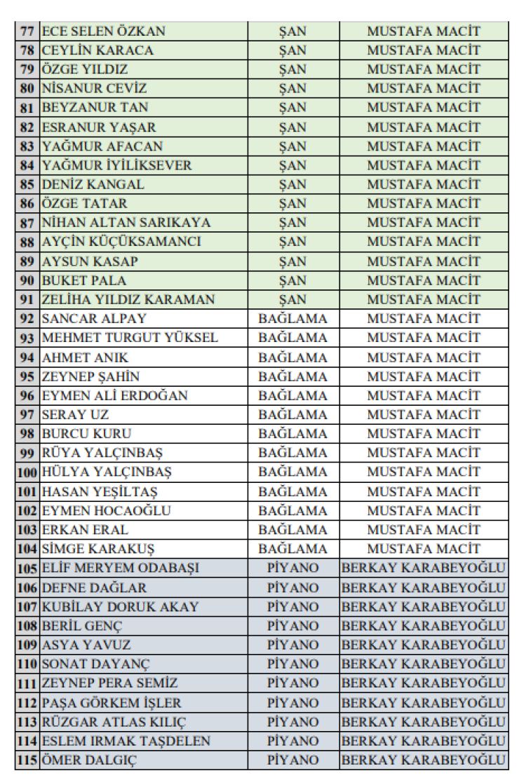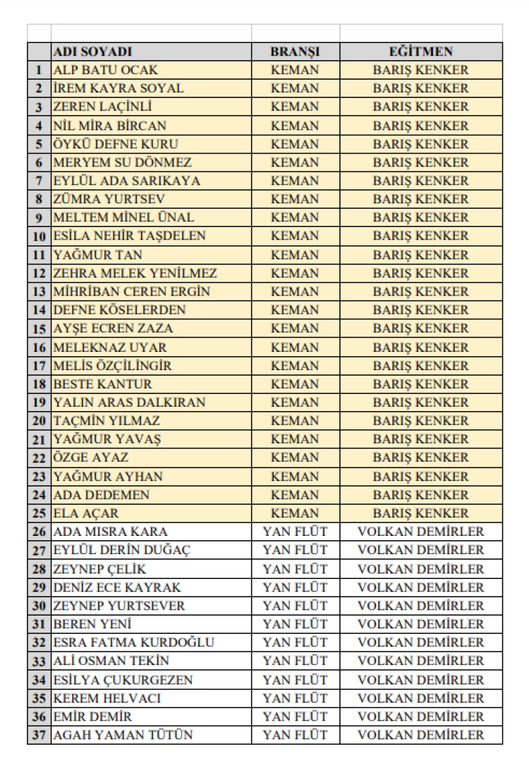 Piyano, keman, yan flüt, klarnet, viyolonsel, şan ve bağlama gibi çeşitli branşlarda düzenlenen sınavların ardından, kurslara katılmaya hak kazanan öğrencilerin isimleri belli oldu.