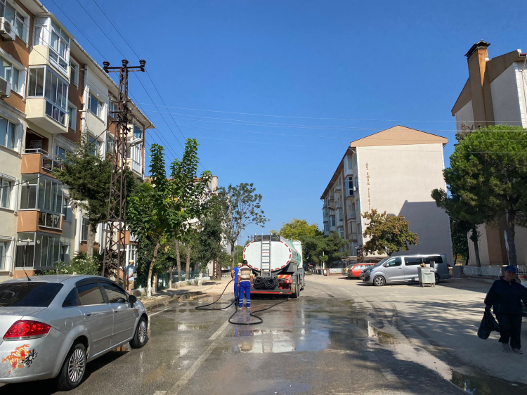 Edirne Belediyesi Temizlik İşleri Müdürlüğü, kentin çeşitli bölgelerindeki yol kenarında biriken toz ve ağaç yapraklarını su ile temizliyor.