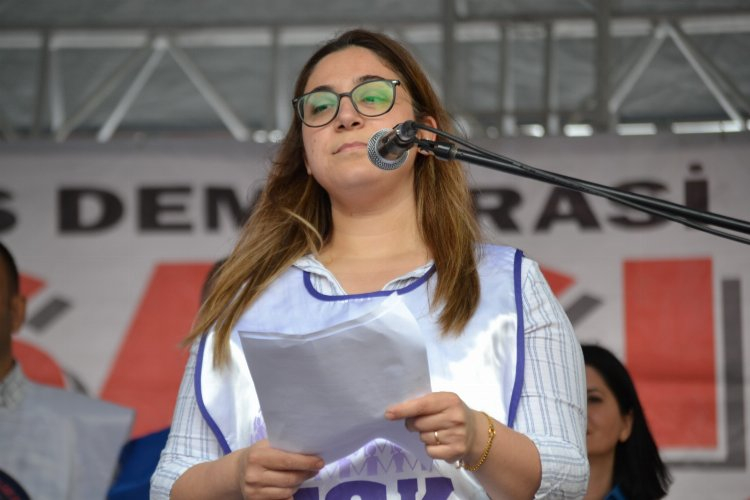 Makasçı’nın ardından konuşmaya devam eden Sumsal ise öğrencilerin ÇEDES ve benzeri projelerin parçası haline getirilmek istendiğini söyleyerek; “Bu nedenle demokrasi mücadelesi 2024 1 Mayıs’ının en asli gündemlerinden biridir. Uluslararası Sendikalar Konfederasyonu (ITUC), bütün dünyada otoriter rejimlerin yükselişine, demokrasinin gerilemesine ve buna bağlı olarak işçi haklarının zayıflamasına karşı ‘Demokrasi İçin’ başlıklı küresel bir kampanya başlatmıştır. Bu 1 Mayıs ülkemizde ve dünyada, sermaye düzeninin ve bunlara bağlı otoriter rejimlerin tahrip ettiği demokrasiyi yeniden inşa edecek olan kolektif öznenin meydanlarda boy göstereceği tarih olacaktır. Bugün 1 Mayıs alanlarında olmak işimize, aşımıza, ekmeğimize, emeğimize sahip çıkmaktır. Bugün 1 Mayıs alanlarında olmak hakkımıza-hukukumuza; gelirde, vergide ve ülkede adalet talebimize sahip çıkmaktır. Bugün1 Mayıs alanlarında olmak eğitim ve sağlık başta olmak üzere herkese nitelikli kamu hizmeti hakkımıza sahip çıkmaktır. Bugün 1 Mayıs alanlarında olmak MESEM adı ile çocuk İşçiliğinin sömürülmesine karşı olmaktır. Bugün 1 Mayıs alanlarında olmak söz ve karar hakkımıza; sendikalı olma, örgütlenme ve grev hakkımıza; ifade özgürlüğümüze; yani demokrasiye sahip çıkmaktır. Bugün1 Mayıs alanlarında olmak İstanbul Sözleşmesine, işyerinde şiddete ve tacize karşı ILO’nun 190 sayılı sözleşmesine sahip çıkmaktır. Bugün 1 Mayıs alanlarında olmak Tayfun Kahraman, Can Atalay, Çiğdem Mater, Mine Özerden ve Gezi parkı tutsaklarının yanında olmak demektir. Bugün 1 Mayıs alanlarında olmak eşitliğe, özgürlüğe, laikliğe, hepimizin eşit yurttaşlar olarak barış içinde, kardeşçe yaşayacağımız bir memleket mücadelesine sahip çıkmaktır. Bugün 1 Mayıs alanlarında olmak emperyalizme karşı tam bağımsızlığı savunmaktır diyor, hepinizin 1 Mayıs Emeğin bayramını, İşçi bayramını bir kez daha kutluyoruz” sözlerine yer verdi.