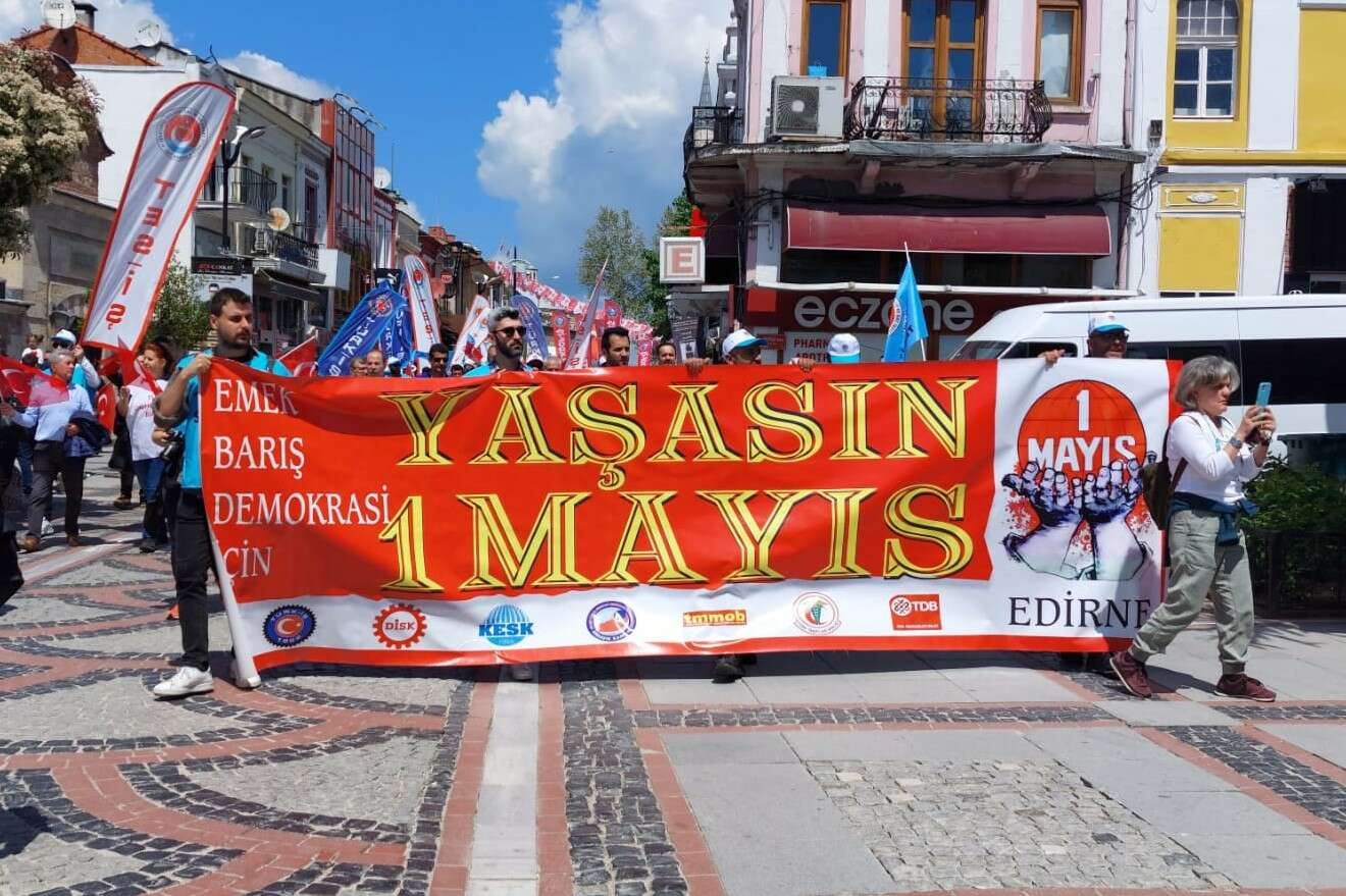 Edirne’de 1 Mayıs kutlaması için toplanma yeri Ayşekadın’daki Şükrüpaşa İköğretim Okulu olarak seçildi. Sabah saatlerinden itibaren toplanan gruplar bir süre sonra yürüyüşe geçtiler. Yol boyunca iktidarın politikalarını protesto eden pankartlar taşıyan gruplar iktidarı protesto eden sloganlar attılar. Ayşekadın’dan Saraçlar Caddesi’ne kadar olan yürüyüş güzergahı boyunca polis sıkı güvenlik tedbirleri aldı.