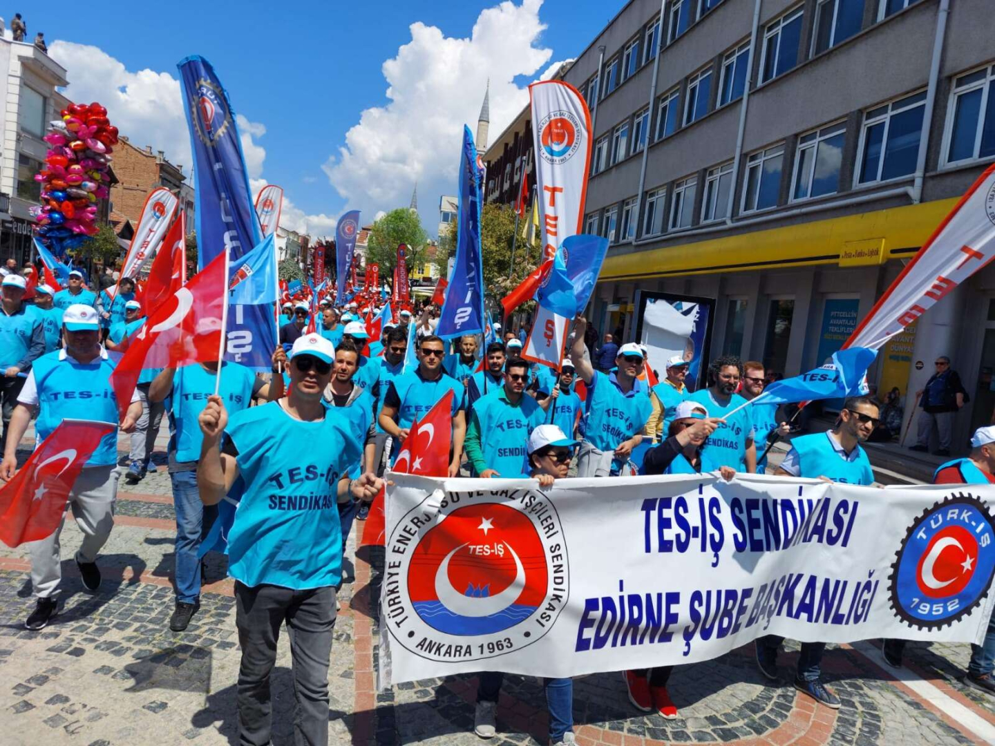 1 Mayıs Edirne’de bir yürüyüş ve ardından mitingle kutlandı. Çeşitli sendika, dernek, meslek örgütü ve siyasi partilerden oluşan grupların oluşturduğu kortej Ayşekadın’dan Saraçlar Caddesi’ne kadar sloganlar atarak yürüdü.