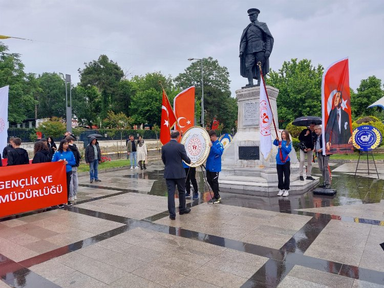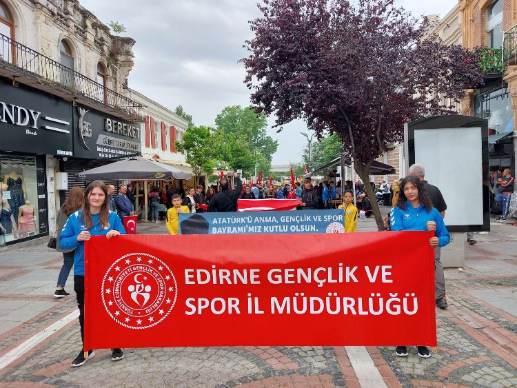 Edirne'de Atatürk'ü Anma, Gençlik ve Spor Bayramı nedeniyle gençlik yürüyüşü ve çelenk sunma töreni yoğun katılımla gerçekleştirildi.
