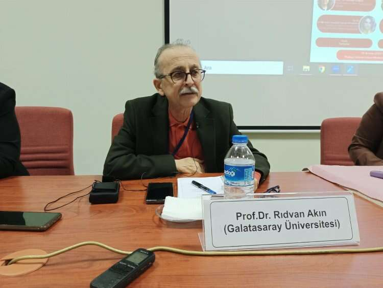 Prof. Dr. Rıdvan Akın, ‘Mübadelenin toplumsal ve siyasal sonuçları’ konusunda sunum yaptı. Akın, Türkiye ile Yunanistan arasında etkileşimden doğan siyasal sonuçların olduğunu belirterek; “Mübadele anlaşması imzalandığında Yunanistan, bugünkü İstanbul’un 4’te 1’i kadar bir toplumdu. Bunun üzerine 1 milyon 300 bin kadar mübadil kabul ettiğin zaman nereye yerleştireceksin? Bütün bunların altında Yunanistan ezildi. Sonra tekrar monarşi sona erdi ve Cumhuriyet’e geçildi. Bu arada bütün Avrupa’da faşizm yükseliyordu. Hem anti-komünist temelde, hem de totaliter rejimlere yakın insanların sözünün daha fazla duyulduğu bir dönem yaşandı. Bütün bunların yaşanmasının nedeni, Birinci Dünya Savaşı’nda Yunanistan’ın kapasitesinin üzerinde bir işe girişmesi ve bundan ağır bir yenilgi ile çıkmasıydı. Sonuçta Yunanistan mübadelenin altında kaldı ve bir türlü rejim istikrarı da olmadı. Ama 1928’te Venizelos tekrar iktidara geldiğinde aklı başına geldi. Yunanistan’a asıl faydanın Türklerle daha fazla dalaşmamak olduğunu anladığından Türkiye’ye zeytin dalı uzattı. Türkiye’ye geldi ve Ankara anlaşması yapıldı” dedi.