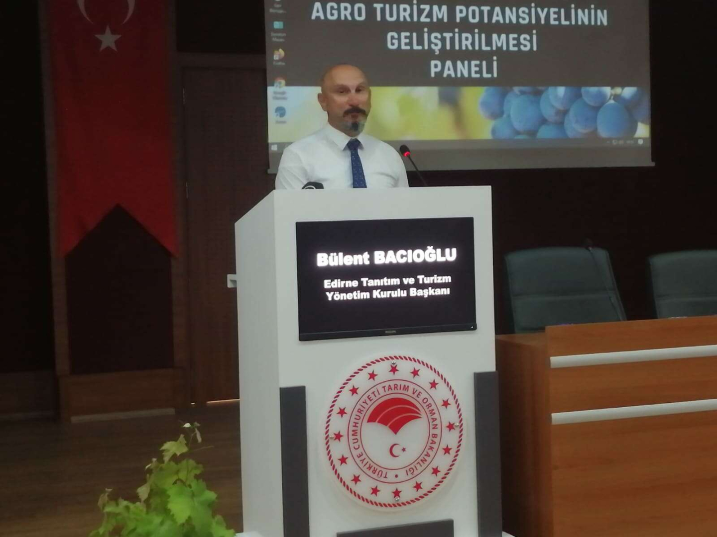 Edirne Tanıtım ve Turizm Derneği, Edirne İl Tarım ve Orman Müdürlüğü, Tekirdağ Bağcılık Araştırma Enstitüsü Müdürlüğü ve Edirne ve Uzunköprü Ziraat Odaları ile iş birliği içinde gerçekleştirilen panelde, Edirne’nin bağcılık kültürü konusunda köklü geçmişi olduğu, dünyanın en önemli üzüm üretim merkezlerinden birisi olduğu ve bölgede agro turizm alanında yeni fırsatlar yaratmak için fikirler ve bilgiler paylaşıldı.