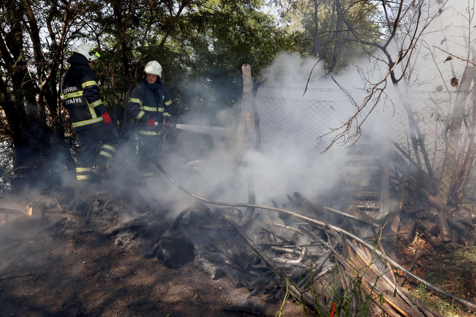 Yan taraftaki evin bahçesine de sıçrayan yangın, itfaiye ekipleri tarafından kontrol altına alınarak, söndürüldü.