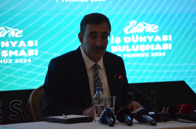 Cumhurbaşkanı Yardımcısı Cevdet Yılmaz Edirne Ticaret ve Sanayi Odası’nda iş insanlarıyla bir araya geldi. Programa Cumhurbaşkanı Yardımcısı Cevdet Yılmaz, Edirne Valisi Yunus Sezer, AK Parti Edirne Milletvekili Fatma Aksal ve iş insanları katıldı.