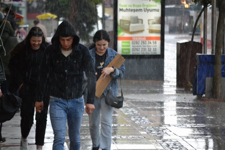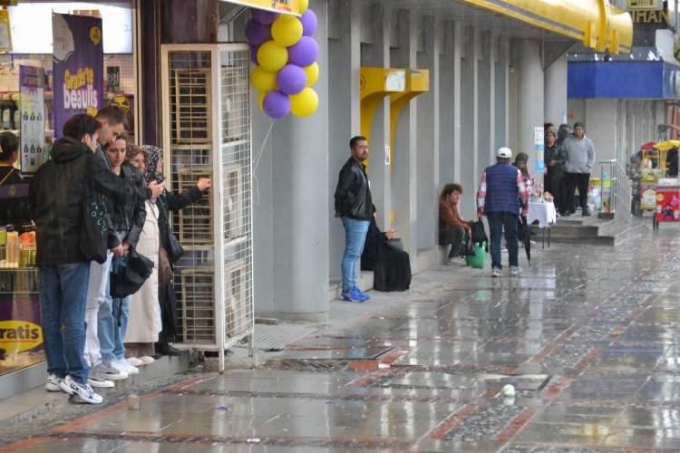 Edirne’de bugün saat 18.20 sıralarında aniden başlayan sağanak yağış, hayatı olumsuz etkiledi. Kentin en yoğun caddesi olan Saraçlar Caddesi’ndeki vatandaşlar, yağmurun başlamasıyla birlikte caddedeki işletmelere kaçtı.