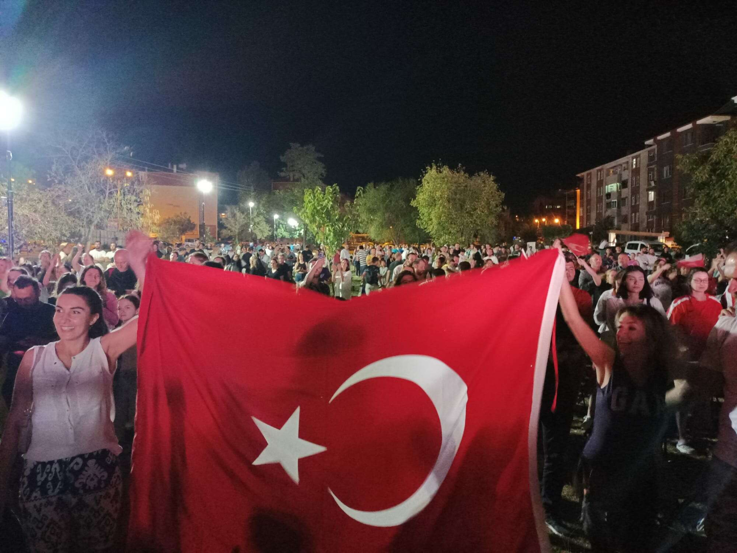 15 Temmuz Cumhuriyet ve Demokrasi Şehitleri Parkı’nda kurulan led ekranda yüzlerce Edirneli, final karşılaşmasını bir arada izledi.