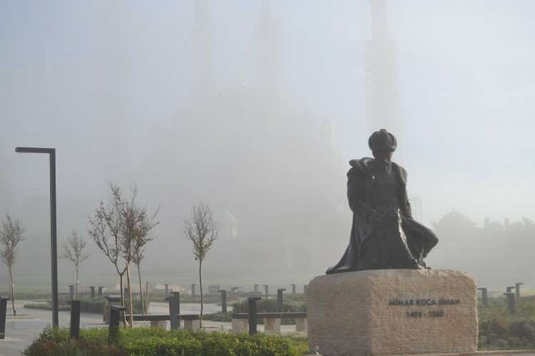 Edirne’de sabah saatlerinde yoğun sis etkili oldu. Sis nedeniyle Mimar Sinan’ın ustalık eseri Selimiye Camii adeta kayboldu. Selimiye Camii, Üç Şerefeli Camii ve Eski Cami’nin bulunduğu ve halk arasında ‘Altın üçgen’ diye tabir edilen bölgede görüş mesafesi zaman zaman 100 metrenin altına düştü.