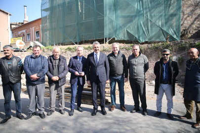 Osmanlı sancak beylerinden Mezit Bey tarafından inşa ettirilen han ve hamamdaki çalışmaları inceleyen Edirne Valisi Yunus Sezer, yüklenici firma yetkililerinden bilgi aldı, bölge esnafıyla yapılan çalışmaları değerlendirdi.