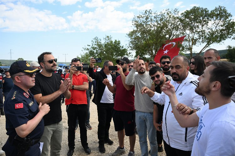 Araziye giden yolu araçlarıyla kapatan "tiny house" sahipleri, alandan ayrılmayacaklarını, araçlarını da çekmeyeceklerini ifade etti. Bunun üzerine ekipler, yan tarladan iş makineleri yardımıyla açtıkları yolla araziye girdi.