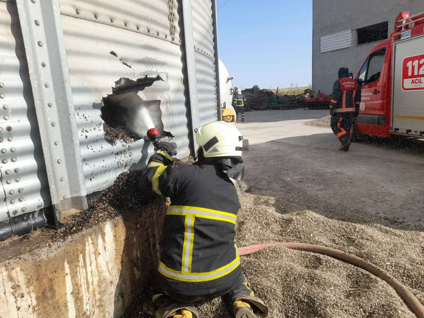 Olay yerine gelen itfaiye ekipleri silonun alt kısmından bir bölüm açarak alevlere müdahale etti.