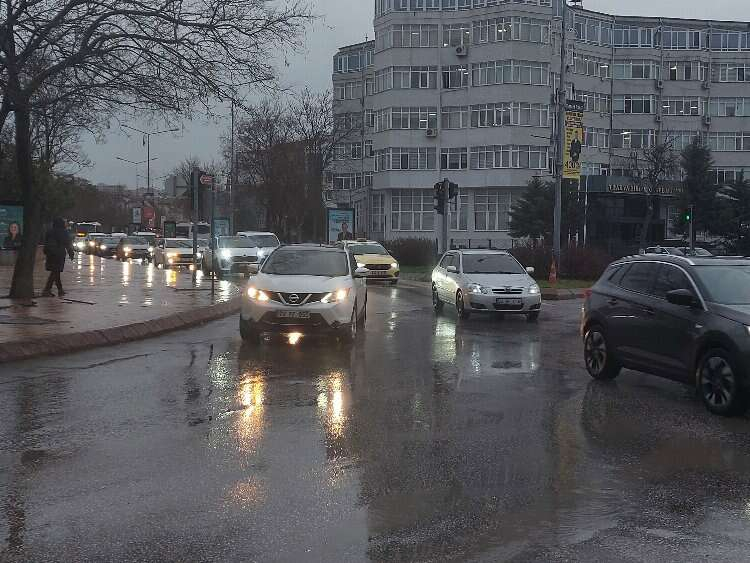 Edirne'de akşam saatlerinden itibaren başlayan yağış, sabah saatlerinde de etkisini göstermeye devam ediyor. Yayaları ve araç sürücülerini olumsuz etkileyen yağış nedeniyle uzun araç kuyrukları oluşurken, dışarıya hazırlıksız çıkan vatandaşlar da yağmurdan saçak altlarında bekleyerek korunuyor.