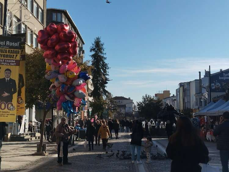 Edirne’de yılın son haftasının ilk günü adeta yazı andıran bir şekilde geçiyor. Güzel havanın etkisiyle Edirne’de vatandaşlar çarşı merkezine akın ederken, Saraçlar Caddesi’nde yoğun kalabalıklar göze çarptı.