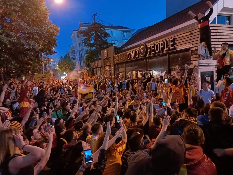 Edirne'de Ayşekadın semtinde bir araya gelen Galatasaray taraftarları, şampiyonluk kutlamasına başladı. Galatasaray’ın farklı olarak önde olması nedeniyle bazı yerlerde Sarı Kırmızılı taraftarlar hakemin son düdüğünü beklemeden kutlamalara başladılar.