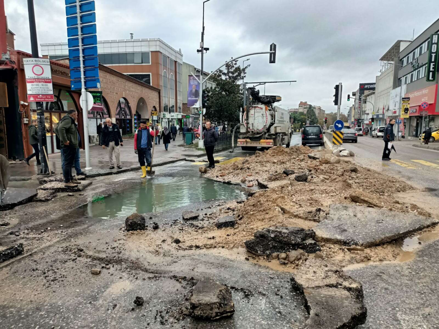 Edirne’nin yoğunluğuyla dikkat çeken trafiğe kapalı Saraçlar Caddesi’nin girişi ile Atatürk Bulvarı’nın birleştiği yerdeki su borusu arızalandı.