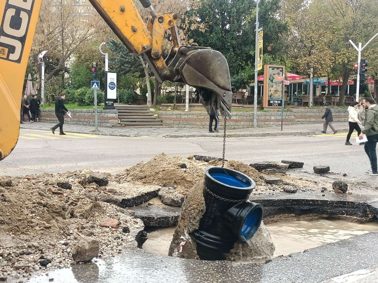 Arıza nedeniyle hem Saraçlar Caddesi’ne, hem de Atatürk Bulvarı üzerindeki trafiğe yoğun su akışı meydana gelirken; vatandaşlar da yaya yolundan geçmekte sorun yaşadılar. Ekipler, su yoğunluğu nedeniyle yaya yolunu kullanmakta sorun yaşayan vatandaşlar için kazı sırasında ortaya çıkan yol parçalarını dizerek, üzerinden geçmelerini sağladılar. Bu sırada yol parçalarının üzerine basarak yaya yolundan geçen bir vatandaş, çalışmalarla ilgili; “Edirne’ye yeni köprü yapmışlar, Fatih Sultan Mehmet Köprüsü” diyerek tepkisi dile getirdi. Vatandaşın tepkisi, çevredeki vatandaşları gülümsetti.