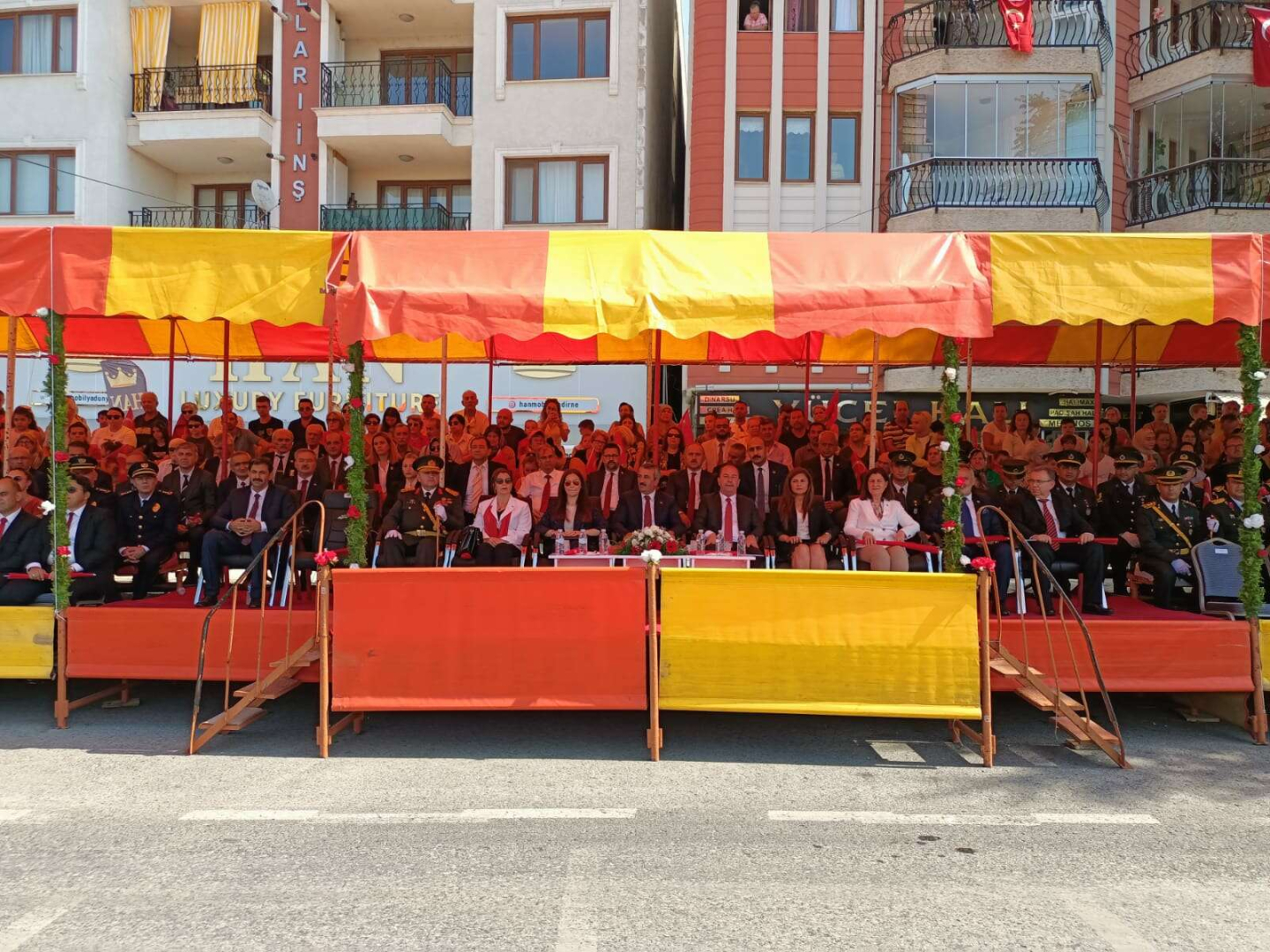 Atatürk Bulvarı'nda düzenlenen tören, Vali Sezer, Garnizon Komutanı Acar, Belediye Başkanı Gürkan'ın halkın bayramını kutlaması ile başlarken; Edirne halkı da ellerindeki Türk bayrakları ile Zafer Bayramı'nı coşkuyla kutladı. Belediye bandosu eşliğinde okunan İstiklal Marşı'nın ardından törende 54'üncü Mekanize Piyade Tugay Komutanlığı adına Tankçı Yüzbaşı Ali Kemal Ateş konuşma yaptı.