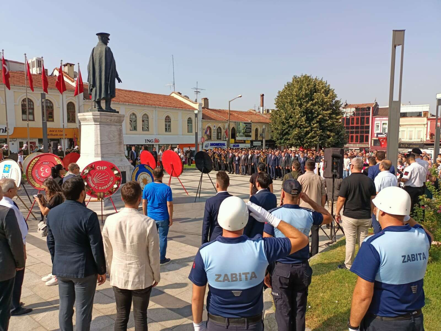Edirne' Zafer Bayramı’nın 101'inci yıl dönümü, düzenlenen törenlerle coşkuyla kutlandı. Edirne Valiliği, Garnizon Komutanlığı, Edirne Belediyesi ile valilikten izin alan siyasi parti ve sivil toplum örgütlerinin Atatürk Anıtı'nda çelenk sunumuyla başlayan tören, Türkiye Cumhuriyeti'nin kurucusu Mustafa Kemal Atatürk, silah arkadaşları ve tüm şehitler anısına bir dakikalık saygı duruşu ve İstiklal Marşı'nın okunmasıyla devam etti.