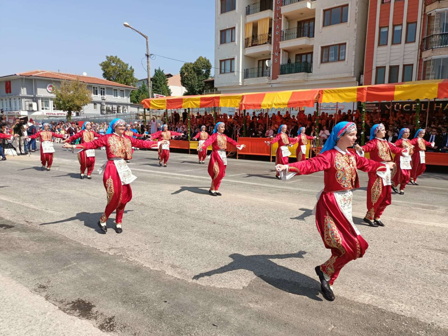 Cumhurbaşkanı Erdoğan'ın mesajının ardından törende Edirne Belediyesi halk oyunları ekibi gösteri yaptı. Gösterinin ardından Edirne Belediye Bandosu eşliğinde gerçekleştirilen geçit töreninde 54'üncü Mekanize Piyade Tugay Komutanlığı'na bağlı birlik geçiş yaptı.