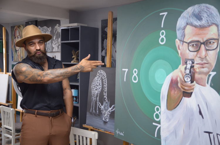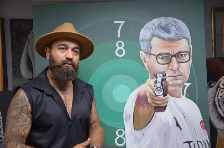 Tabloyu Dikeç’e hediye etmek istediğini belirten Abdullayev, “Ben bu tarz çalışmaları çok hızlı çalışıyorum. Bu yeni konseptim. Üç saat içerisinde yapıyorum. Bu şekilde devam etti. Tabii ki şu an sosyal medyada çok güzel tepkiler aldım. Hatta şöyle bir şey oldu. Yaklaşık 15-20 kişi resmi satın almak istiyor şu an. Ama ben çok isterim kendisine hediye etmeyi. Bir de şöyle bir durum var. Neden 12’den vuruşu yapmadınız diyor insanlar. Hatta yorumlar yazıyorlar. Ben şöyle bir şey düşündüm. Tabloyu kendisine hediye etmek isterim. Belki buraya atış yaparak hedefi 12’den kendisi vurur diye düşünüyorum. Bana göre tablo bitmiş değil. Yusuf Dikeç’e bu tabloyu hediye edip, kendisi atış yaparsa tablo tamamlanmış olur. Bence Yusuf Dikeç’in kendi duvarında olmayı hak ediyor bu tablo” ifadelerine yer verdi.