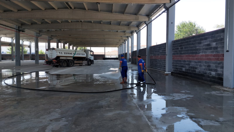 Edirne Belediyesi ekipleri tarafından inşasında sona gelinen pazaryerinin içerisinin de temizlendiği görüldü. Pazaryerinin en yakın sürede açılması bekleniyor