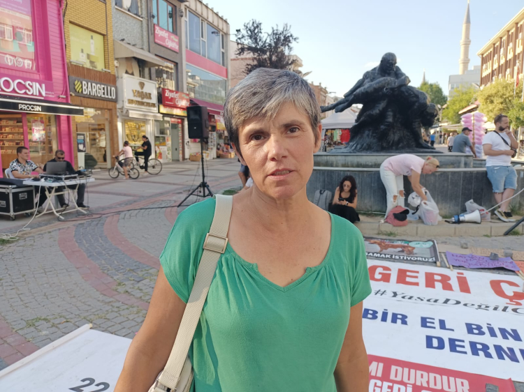 Edirne Kent Konseyi Yürütme Kurulu Üyesi Havva Budak, oturma eyleminin üçüncü gününde devam ettiğini belirterek; “İlk 2 gün yasa mecliste görüşüldüğü için ‘Yasayı geri çek’ diyorduk. Artık ne yazık ki katliam yasası onaylandı ve bugün buradan Edirneli yaşam hakkı savunucuları olarak Cumhurbaşkanına sesleniyoruz; lütfen bu uygulanması imkânsız olan, akla, bilime ve vicdana sığmayan katliam yasasını veto etsin. Şu anda bin 300 belediyenin sadece 322 tanesinde bakım evi varken ve bakım evi kurma zorunluluğu 25 bin nüfus üstü belediyelere 2028 yılına kadar zaman tanınmışken uygulanması imkânsız bir yasadır. Söyledikleri gibi 4 milyon sokak hayvanı olduğunu varsayarsak, 105 bin kapasiteli barınaklarda bu hayvanların bakılması mümkün değildir. Bu yasa ölüm, şiddet getirecektir. Mücadelemiz sokakta devam edecek” diye konuştu. Oturma eyleminin saat 22.00’ye kadar devam edeceği belirtildi.