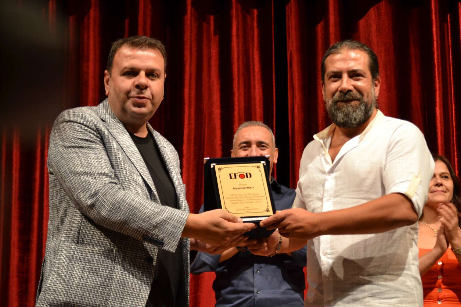 Törenin açılış konuşmasını gerçekleştiren EFOD Başkanı Serdar İyiiz, EFOD’un 43 yıllık köklü bir sanat derneği olduğunu söyleyerek; “Sanat derneğinin 43 yıl ayakta durabilmesi ve her yıl çıtayı yükselterek bir yerlere gelmesi kolay bir şey değil. Şu an EFOD’un fotoğraf kütüphanesini kurduk. Kütüphanemizde olan dergiler, Türkiye’de bir arada olarak sadece EFOD’ta var. 1940 yılından itibaren dünyanın çeşitli yerlerinde seri halinde çıkmış fotoğraf dergileri bizde ve kitap olarak da sadece şu an Türkiye’de fotoğraf üzerine yayımlananların yüzde 80’ine sahibiz. İsteyenler kitaplardan ve dergilerden faydalanabiliyor” ifadelerini kullandı.