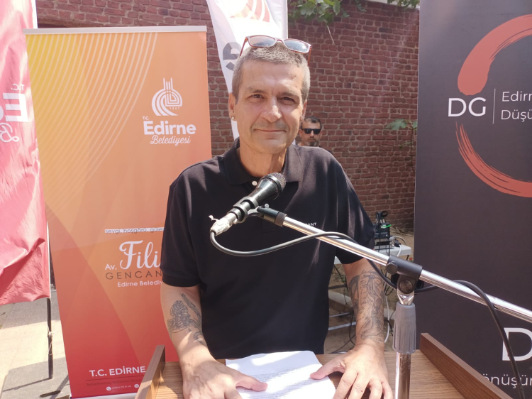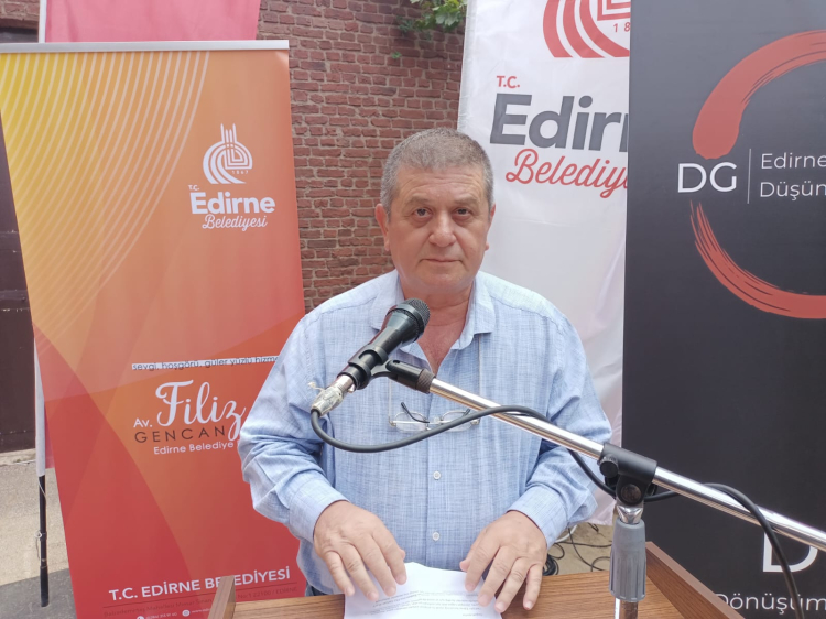 Altınordu’nun ardından törende TAKSAV Edirne İl Temsilcisi Nevzat Çolak konuşma yaptı. Çolak, konuşmasında Edirne Düşünce Günleri’nin 2023 yılında düzenlenen ilkinde ‘Sınırda Yaşamak’ olduğunu hatırlatırken; “Etkinliğimizin bu seneki teması sınırları aşmak. Edirne Düşünce Günleri, Edirne Belediyesi ve TAKSAV’ın destekleriyle Dönüşüm Logos ekibi tarafından gerçekleştirilmektedir Bir kentin kimliğini oluşturan sembolleri vardır. Bizler gerçekleştireceğimiz bu 13 atölyede Edirne'nin sembolü olan farklı mekanlarda bir araya geleceğiz. Bu nedenle bu buluşmaların yalnızca farklı disiplinlerdeki tartışmalara katkı sunmakla kalmayıp kent kültürünün tanıtılmasına da katkı sunacağına inanıyoruz. Biz, TAKSAV olarak toplumun kültürel ve sanatsal hayatının gelişimine bilimsel, özgürlükçü bir anlayışa katkıda bulunmak, yaratıcı ve araştırmacı düşüncelerin gelişmesine yardımcı olmak için çabalayan bir vakıfız. En ilerici aydın kesimlerin dahi söylemlerinde, ‘Bu toplumda ne yaparsak yapalım hiçbir şeyi değişmez’ algısı her geçen gün büyüyüp filizleniyor. Ben şuna Inananlardanım; toplumdaki değişim, dönüşüm ve örgütlülük algısı bizler ürettikçe, yan yana geldikçe yayılacak ve çevremizde daha özgür, daha umutlu insanlar olacak. TAKSAV Edirne Temsilciliği olarak bu projenin parçası olmaktan gurur duyuyoruz” dedi.