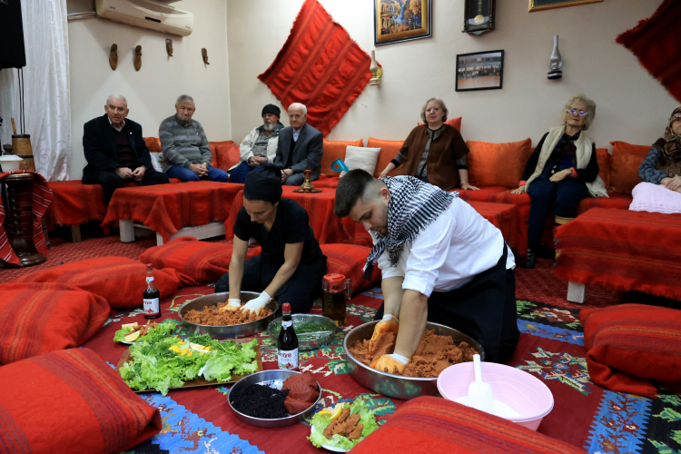 Yoğrulan çiğ köftenin ikram edildiği etkinlikte Tohumcu da bir türkü seslendirdi.