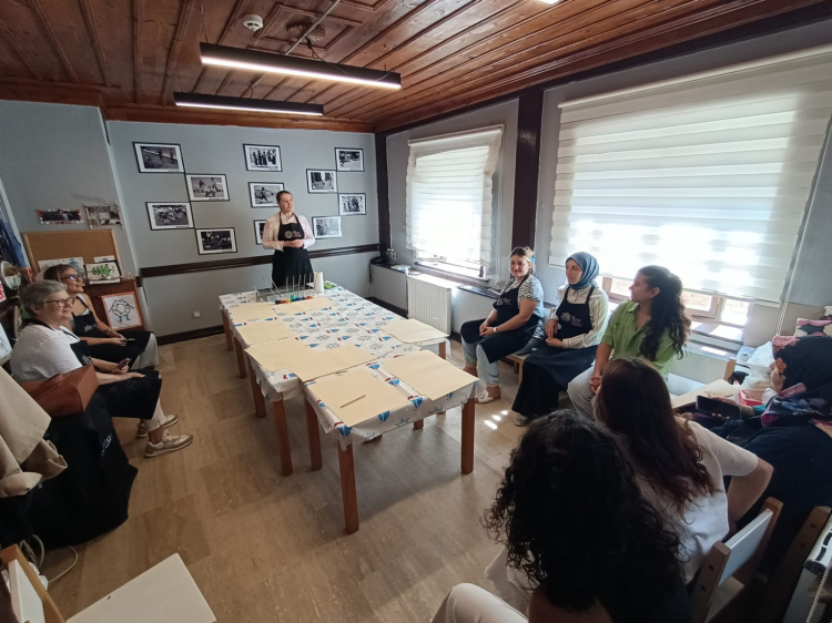 Yetişkinlere yönelik olarak organize edilen atölyede, katılımcılar ebru sanatının inceliklerini öğrenme ve kendi eserlerini oluşturma fırsatı buldu.