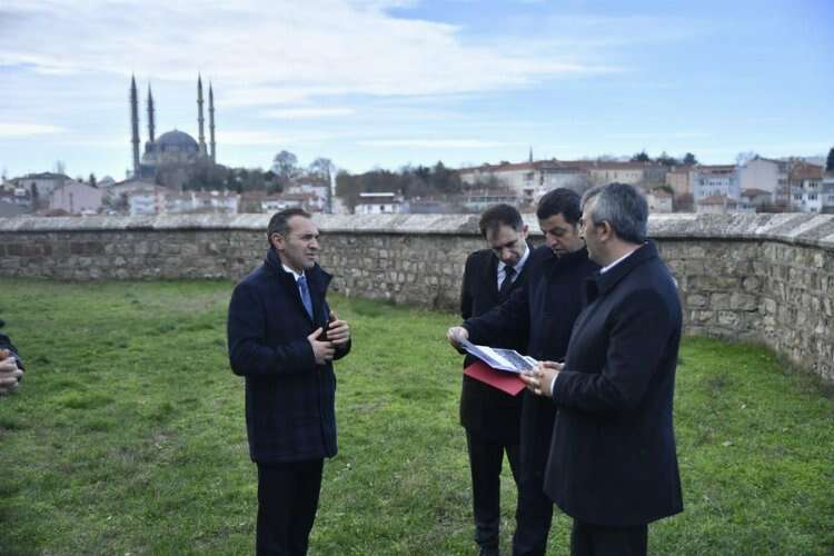Edirne Valisi Yunus Sezer, Konya ve İstanbul Mevlevihanelerinden sonra inşa edilen en önemli Mevlevihane olan ve Balkanlara da hizmet eden Edirne Mevlevihanesi’nin bulunduğu Muradiye Camii bahçesindeki alanda incelemelerde bulundu.