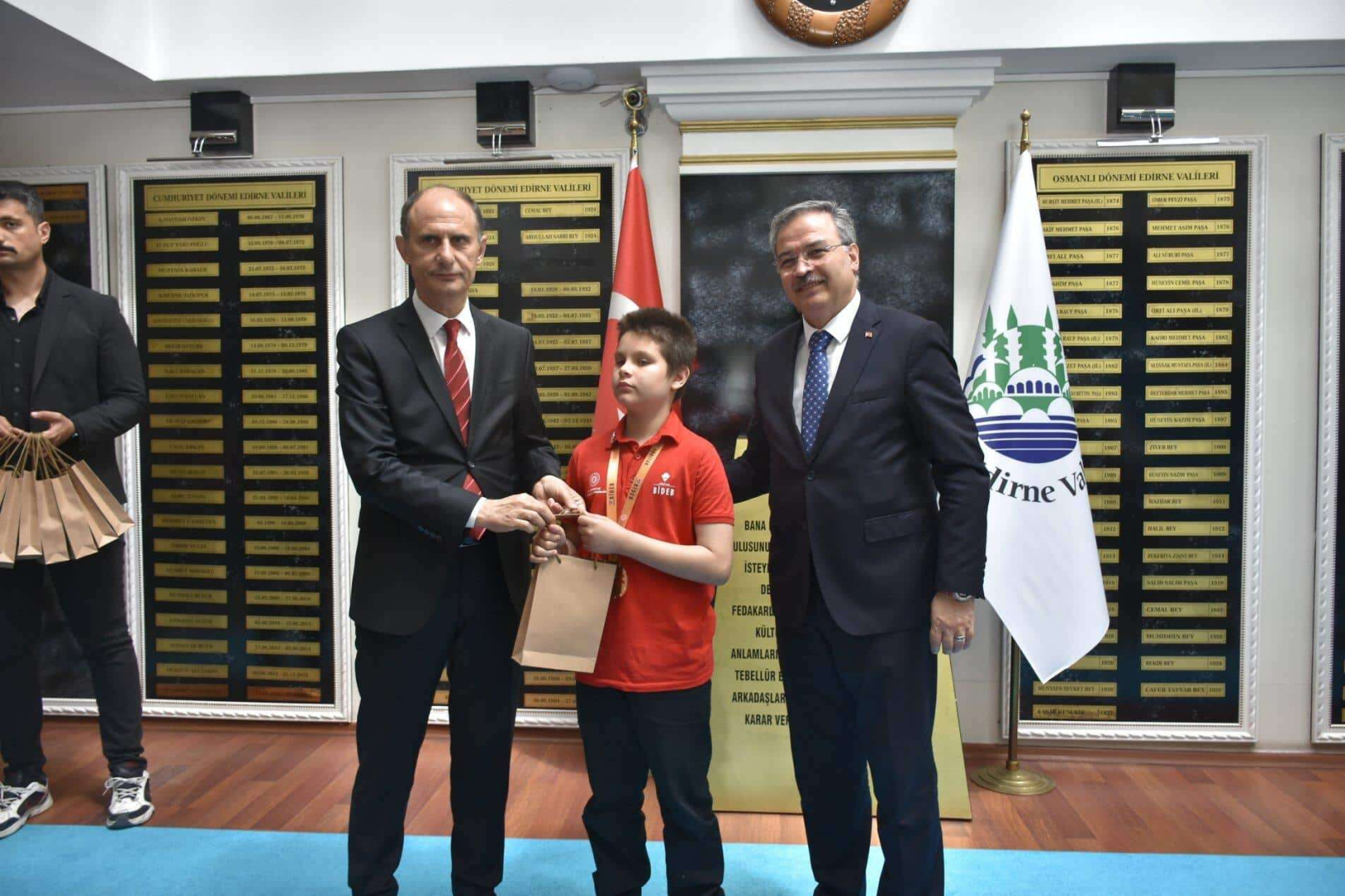 Edirne Valiliği Toplantı Salonu'nda Vali Yardımcısı Sıdkı Zehin'in teşrifleriyle düzenlenen ödül törenine İl Millî Eğitim Müdürü Dr. Önder Arpacı, Müdürlük yöneticileri, bölgesel ve ulusal yarışmalarda dereceye giren öğrenciler ile danışman öğretmenleri, okul yöneticileri ve veliler katıldı.