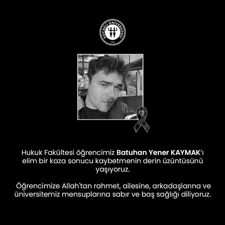 Kocaeli Üniversitesi Rektörlüğü’nden yapılan açıklamada; “Hukuk Fakültesi öğrencimiz Batuhan Yener Kaymak’ı elim bir kaza sonucu kaybetmenin derin üzüntüsünü yaşıyoruz. Öğrencimize Allah’tan rahmet, ailesine, arkadaşlarına ve üniversitemiz mensuplarına sabır ve baş sağlığı diliyoruz” ifadelerine yer verildi.
