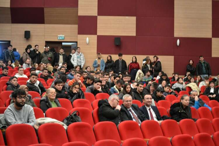 Balkan Kongre Merkezi’nde 11-13 Aralık tarihleri arasında düzenlenen Sinema Günleri’nin bugünkü film gösterimleri, saat 13.00’te Turna Misalı filminin gösterimi ile başladı. Edirneli yönetmen Eren Danışman Boz’un filminin gösterimine Trakya Üniversitesi Rektörü Prof. Dr. Erhan Tabakoğlu, Edirne Teknik Bilimler Meslek Yüksekokulu Müdürü Dr. Öğr. Üyesi Barış Özkapı, Edirne Teknik Bilimler Meslek Yüksekokulu Öğr. Üyesi ve Yönetmen Sali Saliji, filmin yönetmeni Eren Danışman Boz, oyuncusu Şennur Nogaylar ve görüntü yönetmeni Eyüp Boz, akademisyenler, öğrenciler ile vatandaşlar katıldı.
