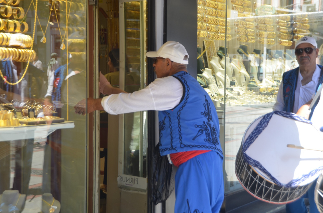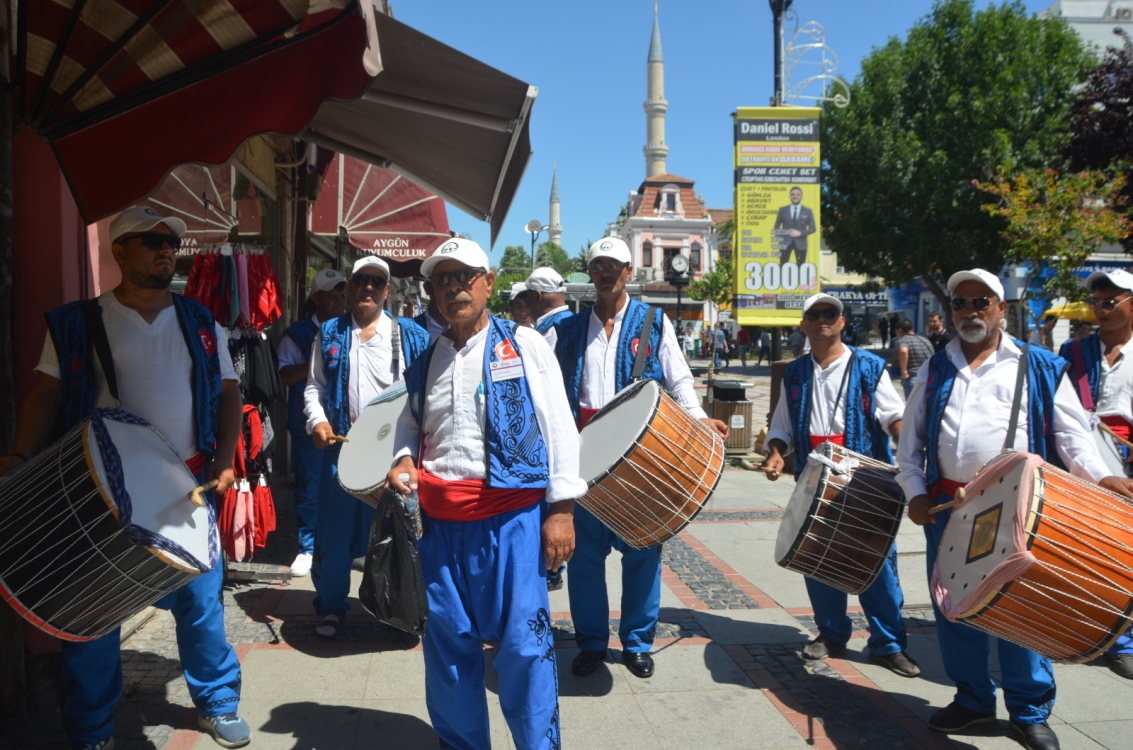 Edirne’de Kırkpınar davul zurna ekibi, 663’üncü Tarihi Kırkpınar Yağlı Güreşleri’ndeki davetlerini sürdürüyor. Toplamda 41 kişilik ekip Saraçlar Caddesi’ndeki esnafları gezerek 4-7 Temmuz’da Sarayiçi Er Meydanı’nda yapılacak olan organizasyona davet ediyor. Davet sırasında esnaflardan bahşiş alan ekip, renkli görüntülere sahne oluyor.