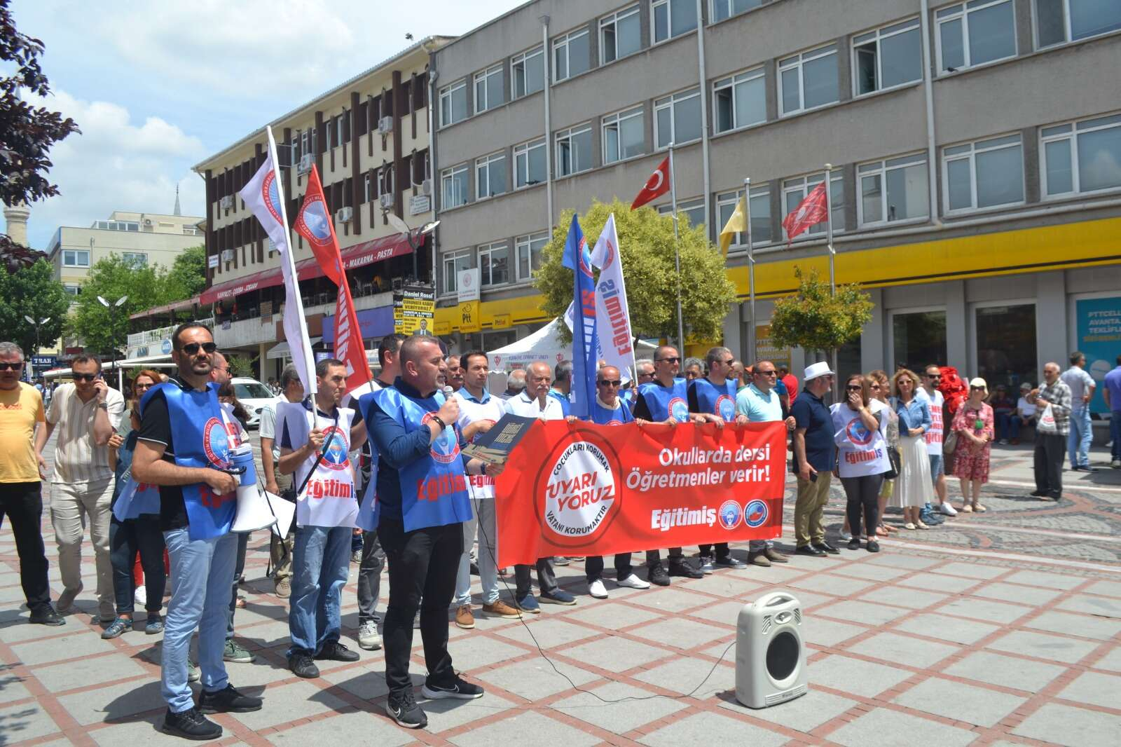 Eğitim-İş olarak, Anayasaya, yasalara ve yönetmeliklere açıkça aykırı; laik ve bilimsel eğitimle taban tabana zıt olduğunu söyledikleri ÇEDES protokolünü yargıya taşıdıkları belirtilen Akçay “Alanında uzman eğitimciler varken konuyla ilgisi olmayan kişileri ve yapıları eğitim sistemimize sokmak kamu kaynaklarını israf etmektir. Bugün de burada ve tüm Türkiye’de eğitim dışı kurumlarla, gerici dernek ve vakıflarla imzalanan protokollere ve projelere karşı ‘Çocukları korumak, vatanı korumaktır’ anlayışıyla alanlardayız. Tüm yurttaşlarımıza sesleniyoruz, gelin bu protokolü birlikte reddedelim! Eğitime, geleceğimiz olan çocuklarımıza sahip çıkalım” ifadeleri kullanıldı.