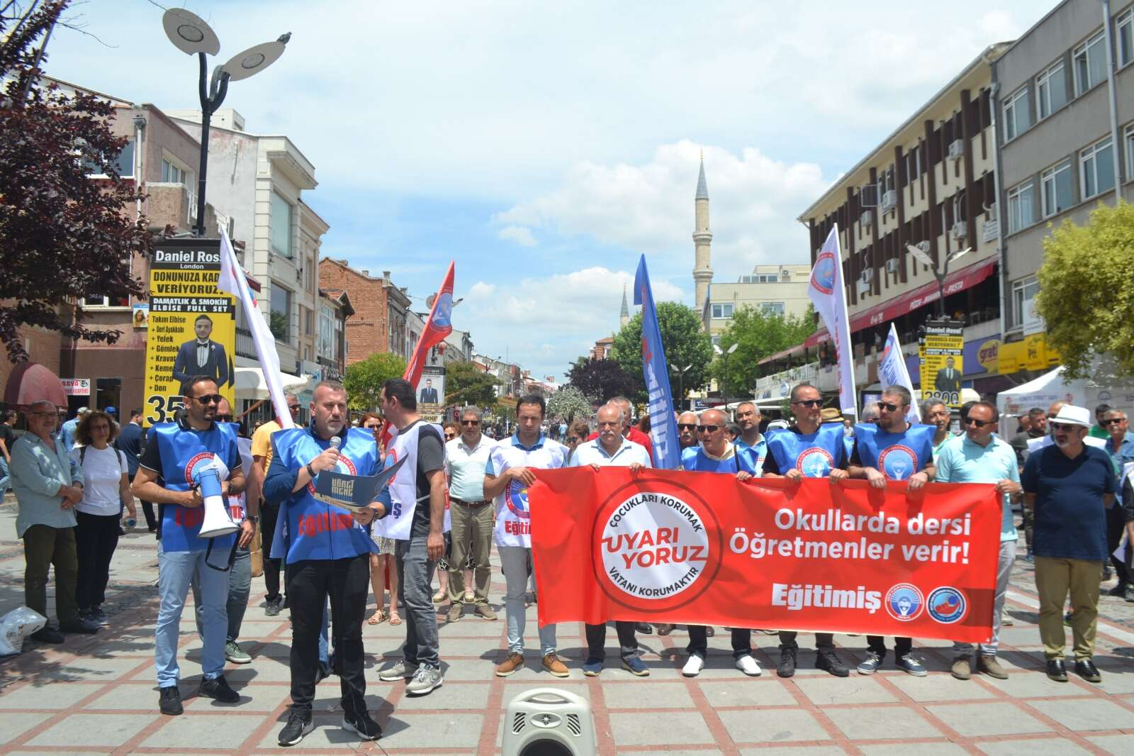 “Eğitimde yaratılan karanlık tabloya karşı harekete geçiyoruz” başlığıyla yapılan açıklamada İzmir ve Eskişehir başta olmak üzere okullara pedagoji eğitimi almamış din görevlilerinin atandığı iddia edildi. Eğitim-İş Edirne Şube Başkanı Murat Akçay’ın okuduğu açıklamada“Okullara ‘manevi danışman’ adı altında imam, müezzin, vaiz, din hizmetleri uzmanı ve kuran kursu öğreticisi atanması eğitimde çok başlılığın artacağının da net sinyallerini vermiştir” ifadelerine yer verildi. Akçay “Daha kötü ne olabilir ki? sorusuna her yeni eğitim-öğretim döneminde ‘bu kadar da olmaz’ dedirten iktidar, 2022-2023 eğitim öğretim yılında da bu geleneğini bozmamış, eğitimde geçen yılları dahi mumla aratan bir dönemi ülkeye yaşatmıştır. Sonuna geldiğimiz bu eğitim döneminde gericileştirme ve niteliksizleştirme politikaları dozunu artırmış, bu kuşatmaya bir de ekonomik krizin eğitime yansıması eklenmiştir. Bugün çocuklarımız okullarda, kantinden bir tost dahi alamazken; kalabalık sınıflara mahkum edilmişken, mesleki eğitim adı altında sermayeye çocuk işçi olarak sunulurken, ailesi zengin öğrenci ile yoksul öğrenci arasındaki makas daha da açılmışken, eğitim emekçileri açlık sınırında ücretlere mahkum edilmişken, bir milyona yaklaşan atanmayan öğretmen varken, şimdi bir de çocuklarımız eğitim dışı kurumların kucağına itilmeye çalışılmaktadır. Onca skandala rağmen dernek / vakıf maskesi takmış tarikatlar MEB protokolleri aracılığıyla eğitimde cirit atmaya devam etmektedir. Eğitimdeki bu gericileştirme hamleleri 28 Mayıs seçimleri biter bitmez hızlandırılmış, İzmir ve Eskişehir başta olmak üzere birçok ilimizde devlet okullarına pedagoji eğitimi almamış din görevlisi gönderilmesi bunun en somut örneği olmuştur” dedi.