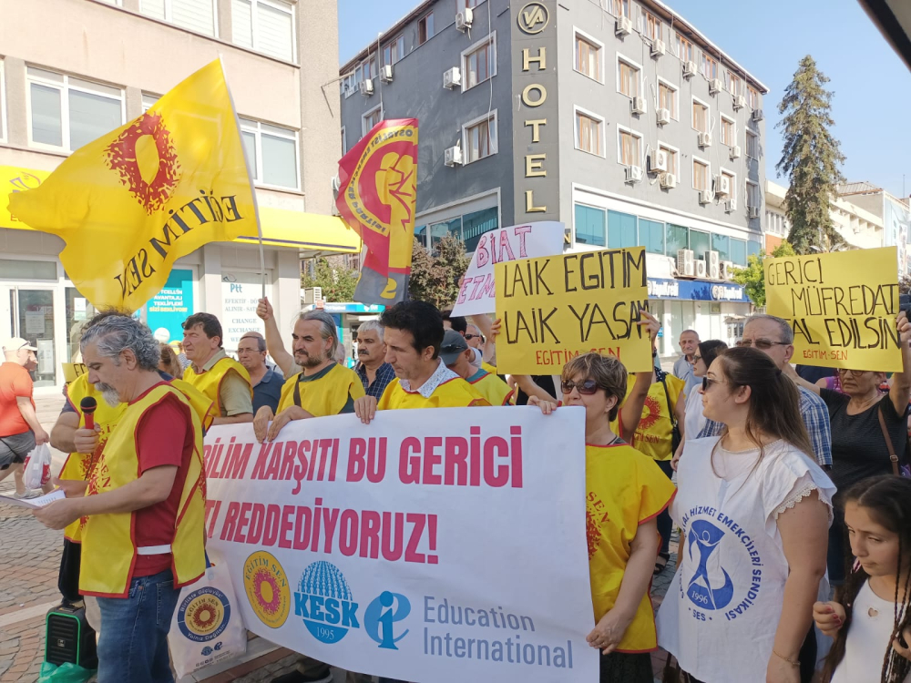 Şube Başkanı Ahmet Acet tarafından okunan basın açıklamasında, laiklik ve bilim karşıtı yeni müfredatı reddettikleri vurgulanırken; “Millî Eğitim Bakanlığı (MEB), geçtiğimiz yıllar içinde defalarca değiştirilen, eğitim müfredatında bir kez daha kapsamlı değişiklikler yapmış ve taslak programları yayımlamıştır. 2024/2025 eğitim öğretim yılından itibaren okul öncesi, 1, 5 ve 9’uncu sınıflarda uygulanmaya başlanacak olan müfredat gibi önemli bir konuda yapılan hazırlıkların eğitim alanında örgütlü sendikalar ve kamuoyundan uzak şekilde gerçekleştirilmiştir” ifadelerine yer verildi.