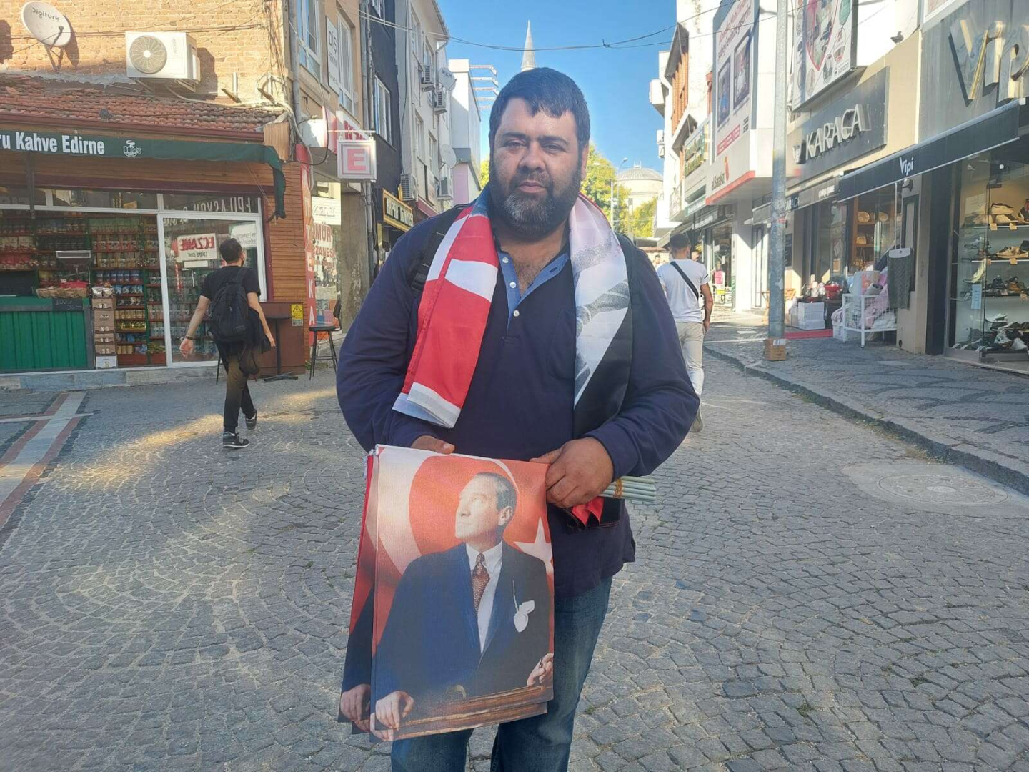 Edirne Saraçlar Caddesi’nde seyyar bayrak satışı yapan Selçuk Polat, “Bayrak fiyatları boyutuna göre değişiyor. 50 liradan 350 liraya kadar fiyatlarda satıyoruz. 29 Ekim Cumhuriyet Bayramı yaklaşıyor. Ayrıca bu akşam milli maç var. Bu sene Cumhuriyetin 100’üncü yılı olması dolayısıyla çok coşkulu geçeceğini düşünüyorum. Şimdiden insanlar bayrak almaya başladılar. Bayrağa ilgi gün geçtikçe artıyor” dedi.