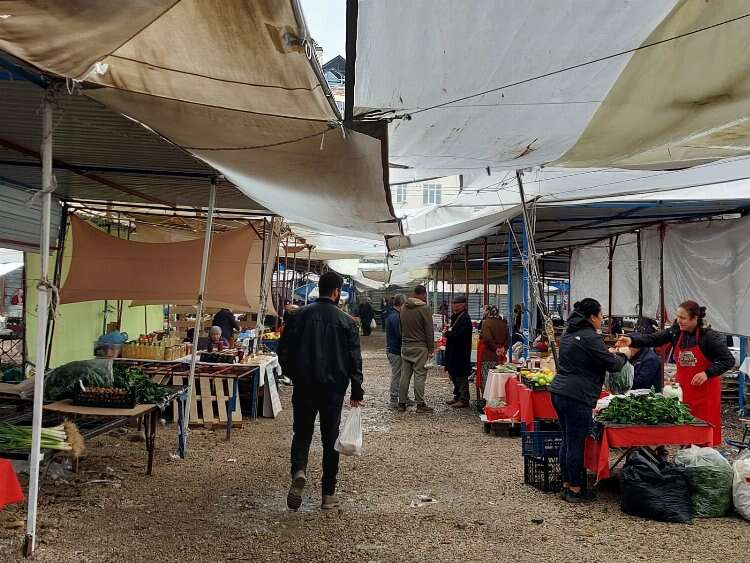 Edirne ve köylerinde kendi yetiştirdiği ürünler ve kendi elleriyle yaptıkları yiyeceklerin satıldığı pazarda esnafın müşteri bekleyişi sürüyor. Esnaf, öğlenden sonra müşteri yoğunluğunun ile alışverişin artmasını bekliyor.