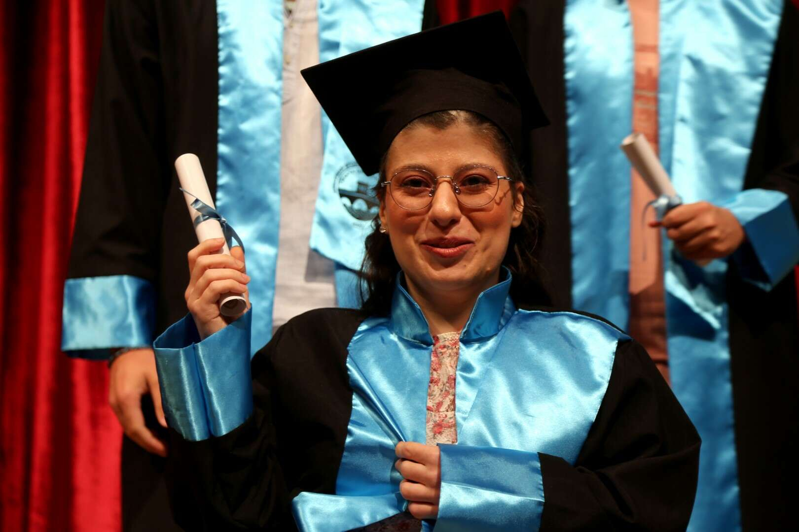 Milli yüzücü Özge Üstün, Kadir Berke Öz, Cemal Hazar Kahraman ve Sadettin Yaman, fakülteden mezun olan 200 öğrenci arasında kep atarak bu mutluluğu yaşayanlardan.