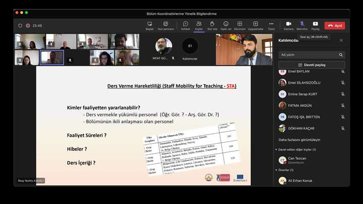 Soru-cevap bölümüyle devam eden toplantı, Dış İlişkiler Merkezi Erasmus Ofisi ile Birim/Bölüm Koordinatörlerinin kurumsal iş birliğinin arttırılması dileğiyle sona erdi.